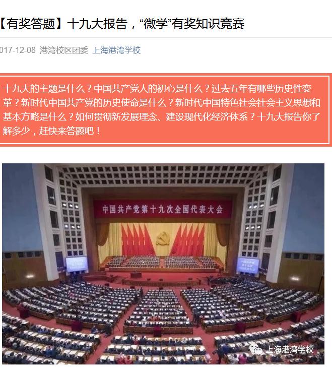 为进一步宣传学习贯彻党的十九大报告精神,港湾校区近日举行“十九大报告微学知识竞赛活动”。
