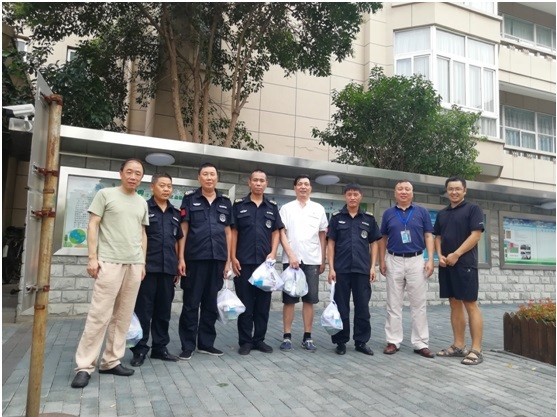 近日,上海持续出现高温,但港湾校区的校园内依旧有很多教职工为学校的发展付出辛勤的汗水。8月8日中午,港湾校区领导高树良、王建明带领相关部门负责人对暑期仍坚守在工作一线的教职工进行慰问,在炎炎夏日为他们送去了一份“清凉”。