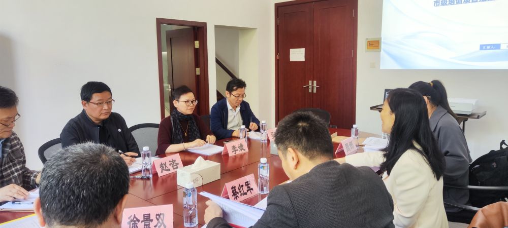 10 月 23 日上午,上海市教师教育学院专家组甘小明等一行 10 人,对上海港湾学校市级师资培训基地承担的“物流专业骨干教师数字素养提升”市级培训项目开展现场调研指导,港湾校区党委书记李婕、副校长赵咨、实训中心主任罗高美等陪同参加。
