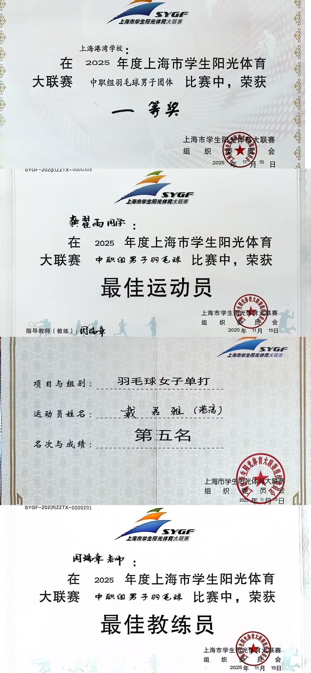 热烈祝贺上海港湾学校学子在2025年上海市学生阳光体育大联赛(中职组)羽毛球比赛中斩获佳绩。