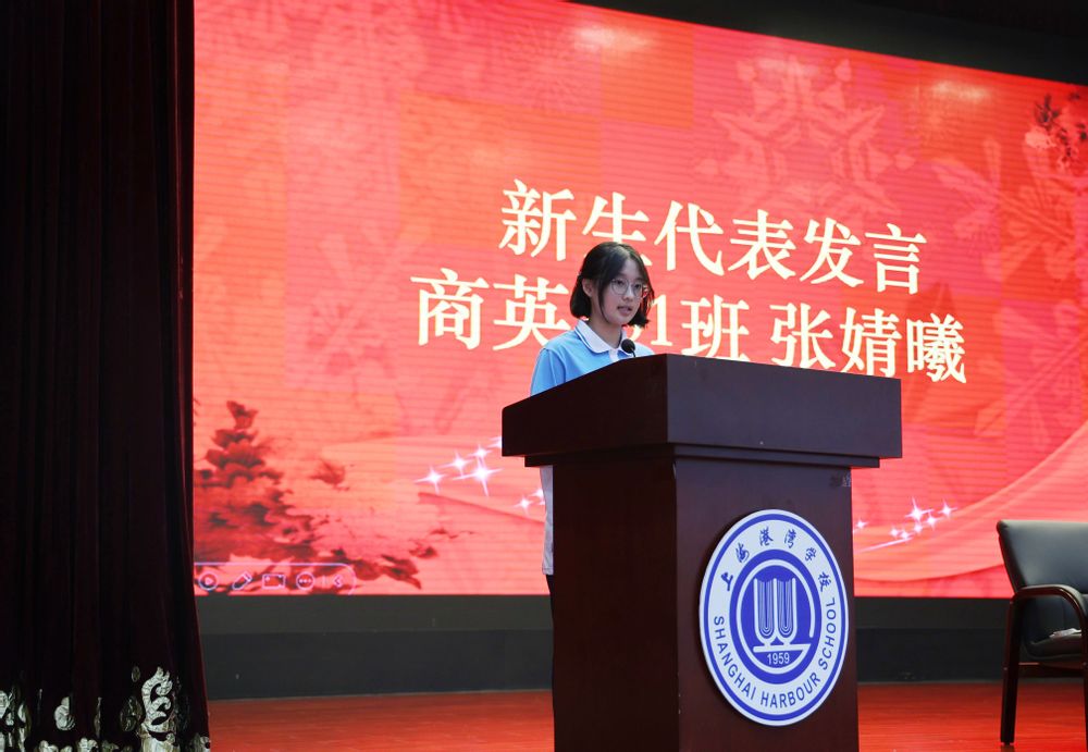 新生代表商务英语251班张婧曦同学发言,她表示会尽快转变角色,适应新校园,刻苦钻研,勤学苦练,明确新目标,规划好未来。